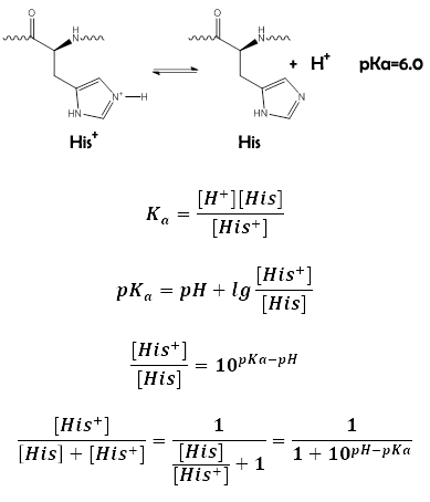 The percentage of protonated His (positively charged) is shown in the table below.