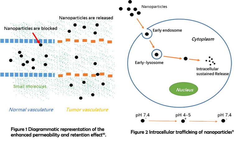 Nanotechnology is a great help to improve the delivery efficiency. Taking advantage of their nanoscale sizes, nanoparticles can inherently prolong blood circulation by avoiding the filtration of capillary endothelium and kidney8. And due to the abnormality of diseased regions, nanoparticles can passively accumulate in tumor tissues through enhanced permeability and retention (EPR) effects9. Moreover, nanoparticles can deeply penetrate tumor tissue and exhibit a significantly improved cellular uptake efficiency both in vitro and in vivo11. And the surface of nanoparticles can be easily functionalized to incorporate desired characteristics, such as endosomal escape12 and rapid release of genes and drugs13-14. These inherent priorities make nano-sized carriers the most promising candidate for nucleic delivery.