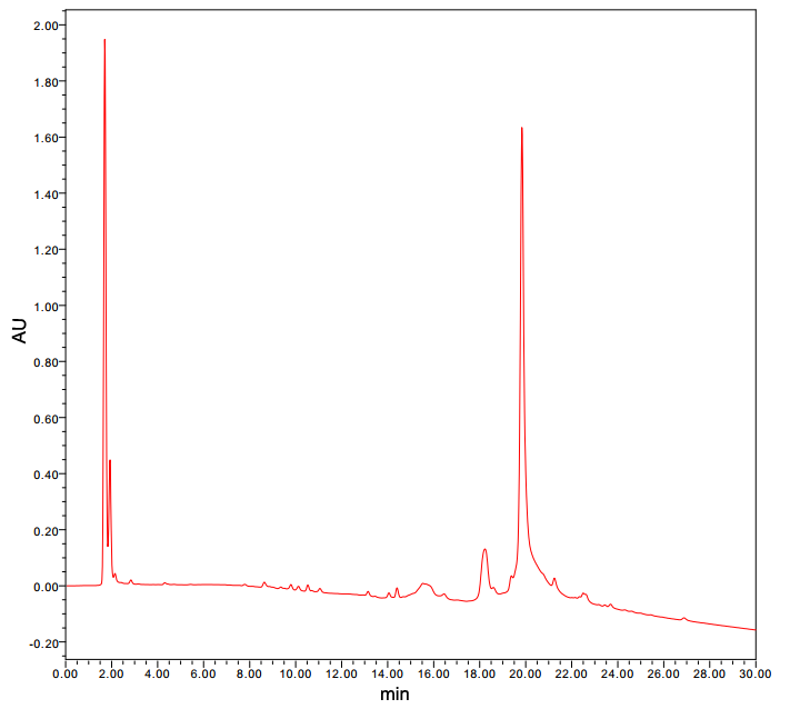- The crude product was purified by HPLC on C18 reversed-phase silica gel (20% to 90% acetonitrile with 0.1% TFS in 45min).