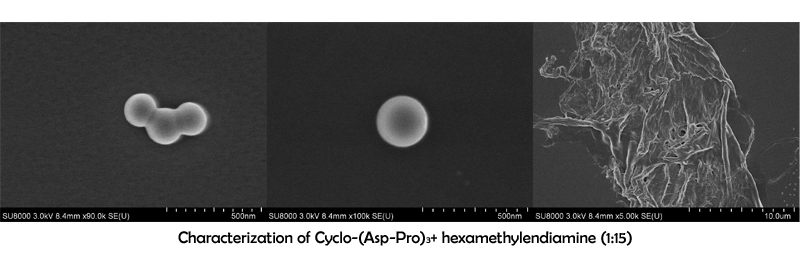 | Cyclo-(DP)3 (Covalent assembly, -COOH:-NH2=1:10) | 20 | 40 | 60 |