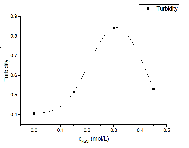 Figure 6. Turbidity profile of protein solution under various salt concentrations of protein mixture at different salt concentrations (0-0.45 M) with a fixed LZR-ELP and (EK)10-TAT-LZE concentration (12.5 μM and 3.125 μM).