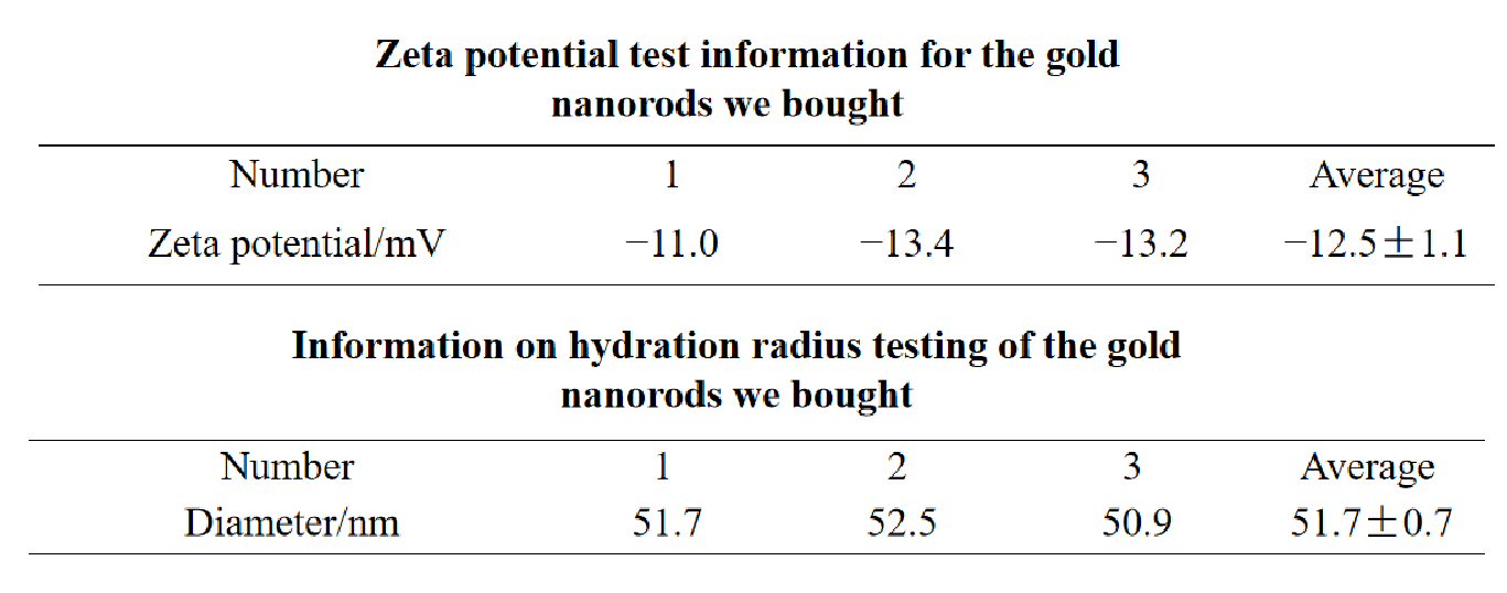 We tested the zeta potential of the purchased gold nanorods and the data are as follows: