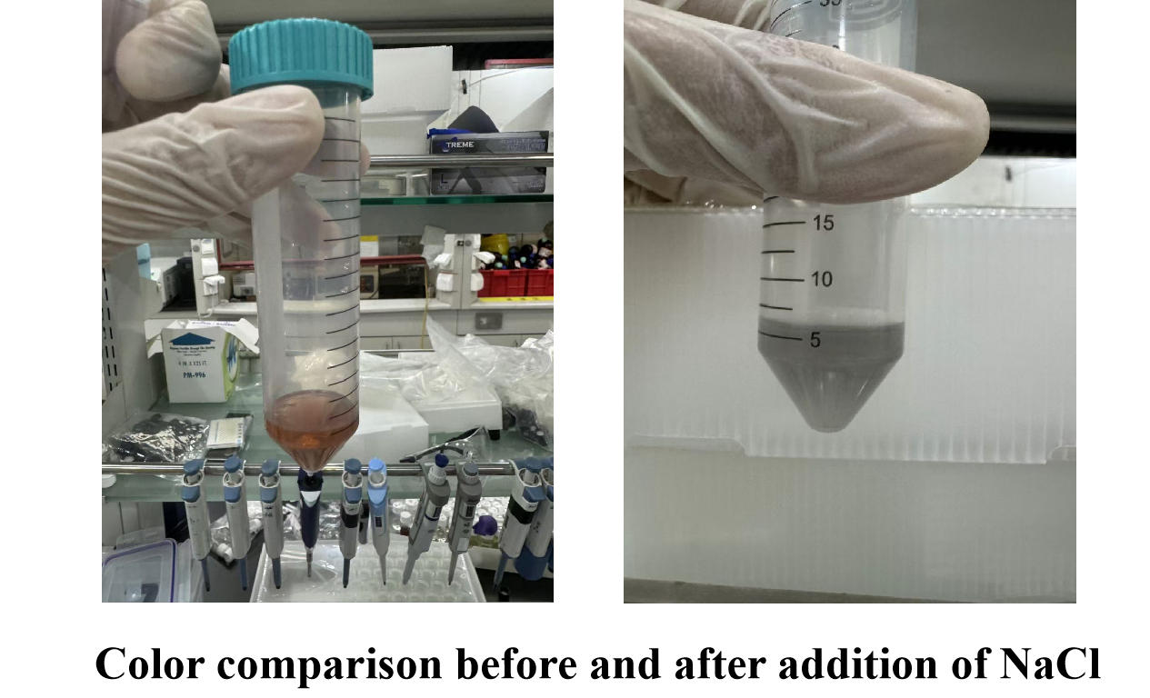 We found that the group from which the PEG solution was completely removed showed a significantly increased purification efficiency, while the group with residual PEG solution exhibited aggregation.