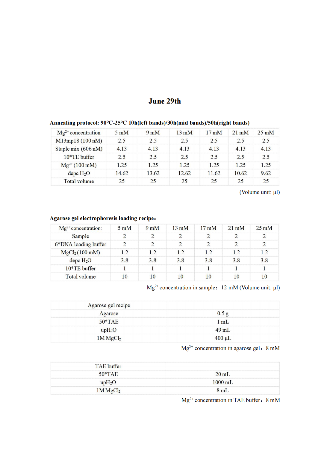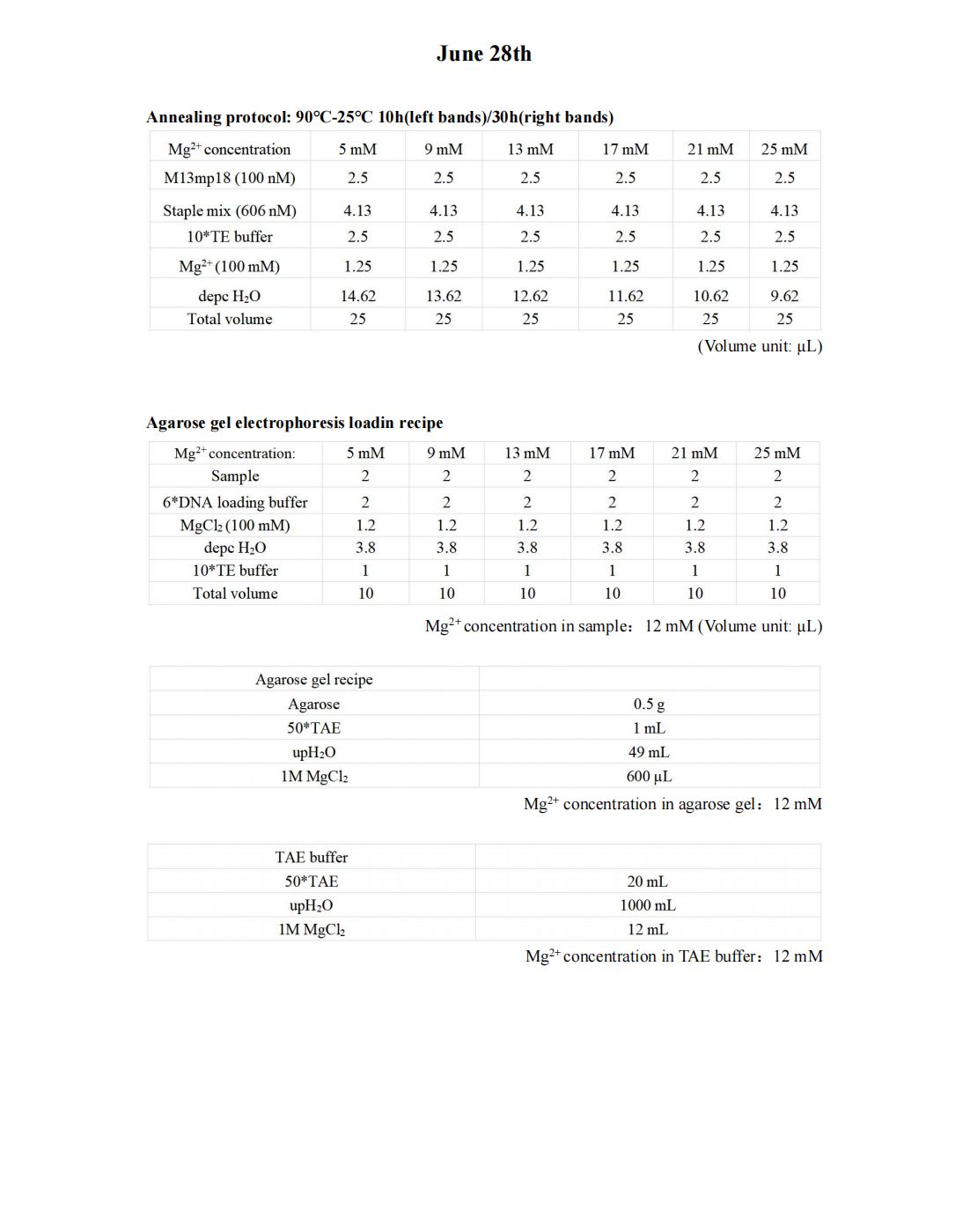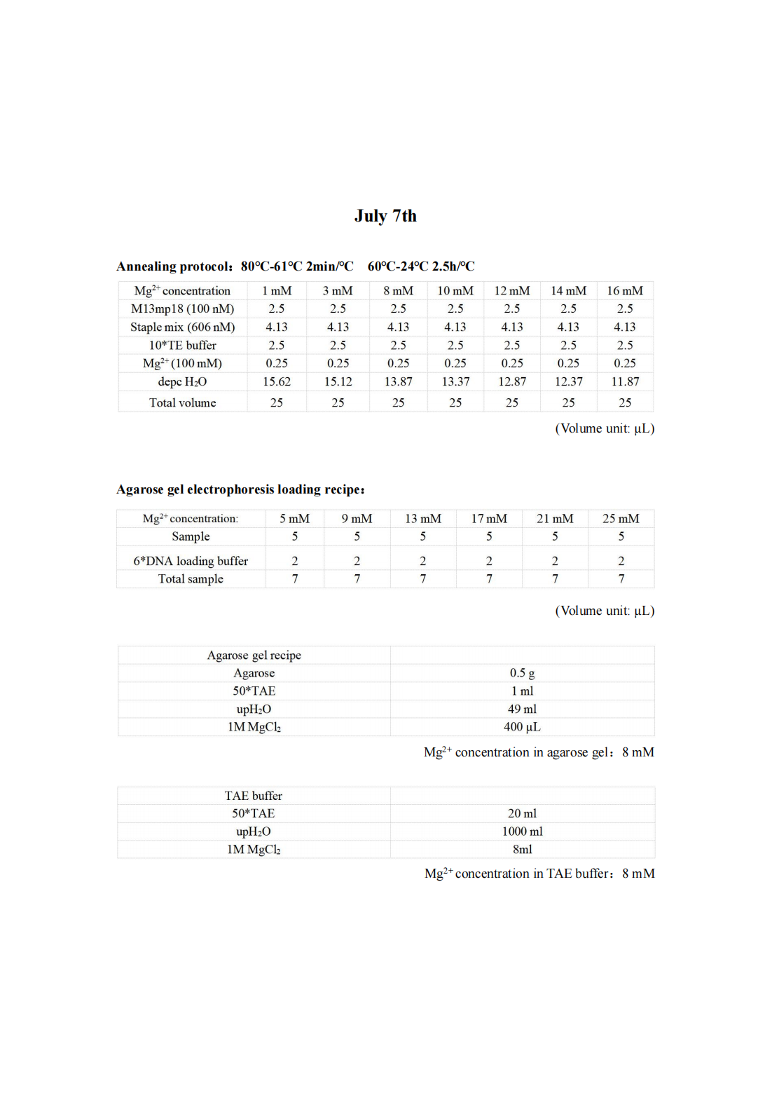 Despite increasing the annealing time to 50 hours, we have not been able to observe the DNA origami band, leading us to suspect that the current annealing procedure may not be compatible with our origami design. Additionally, we have noticed a bright sample well, which we hypothesize may be due to DNA aggregation caused by the high concentration of Mg2+ in the TAE buffer and agarose gel. Consequently, we have decided to modify the annealing protocol and reduce the Mg2+ concentration in both the TAE buffer and agarose gel to mitigate this issue.