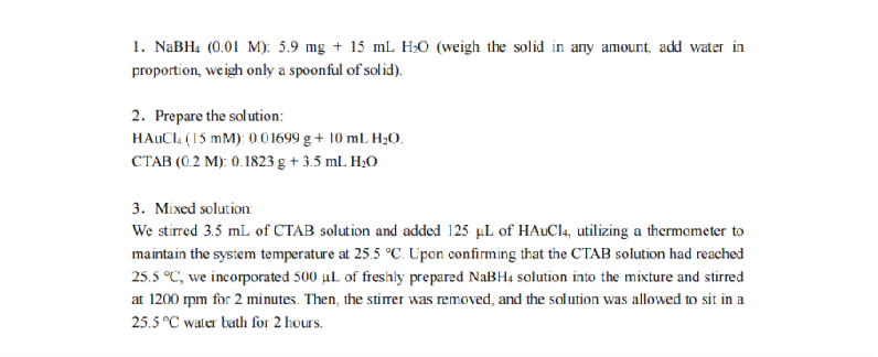 According to the new procedure, the color of the synthesized seed was dark brownish red, which was a relatively reasonable seed color. The seed synthesis can be considered successful and the growth of the gold-nanorods which is the following step of the experiment can be carried out.